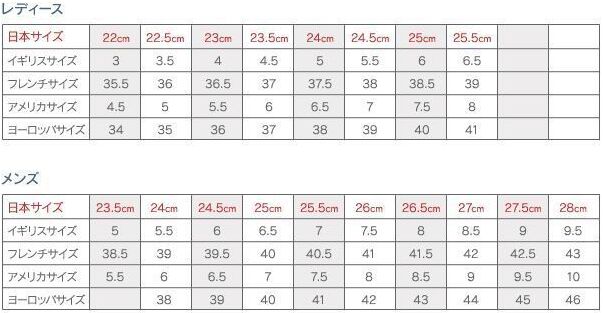 | サイズ | 36, 36.5, 37.5, 38, 38.5, 39, 40, 40.5, 41, 42, 42.5, 43, 44, 44.5, 45 |