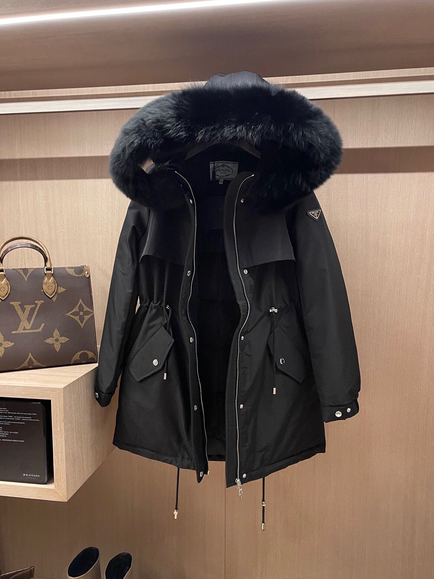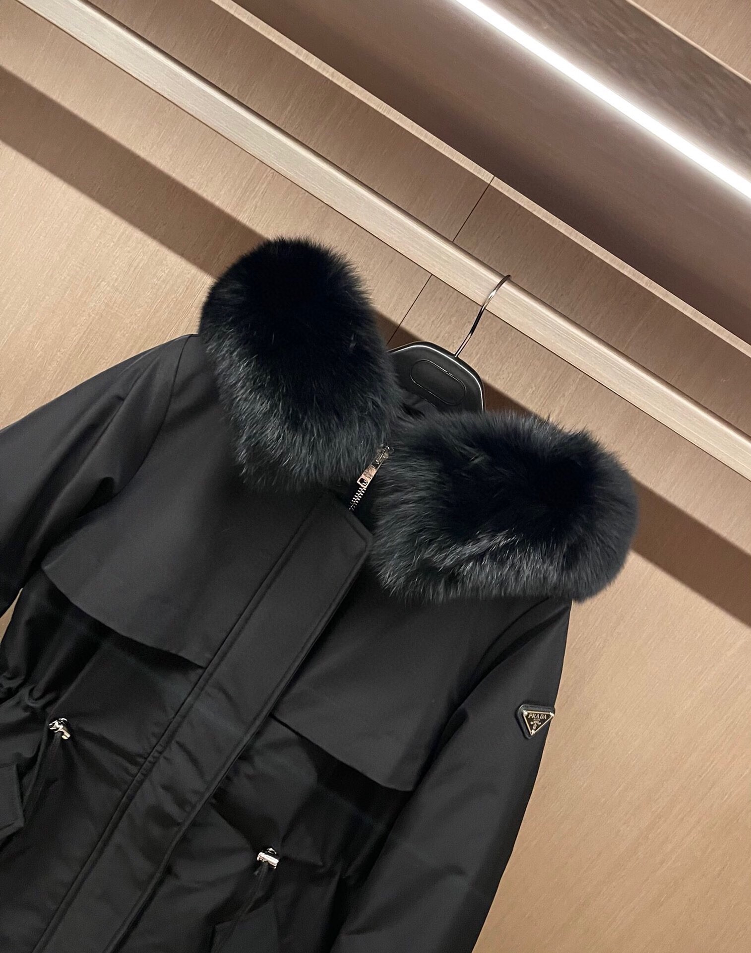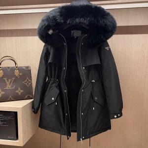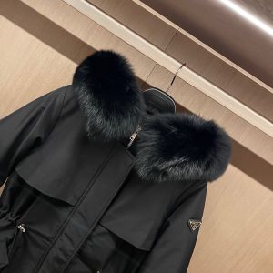 プラダ 秋冬用 ロングダウンコート ファーフード付き 2209JBJ-PRA6369